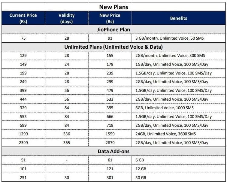 देखिये दोस्तों, Reliance Jio ने अपना Tariff Plan के कीमत में बढ़ोतरी कर दिया है। Jio के New Tariff Plan 1 दिसंबर 2021 से पुरे देश में लागू हो जायेगा। Jio ने अपना Data Plans, Unlimited Plans के साथ ही Jio phone plan को शामिल किया हैं। आपके जानकरी के लिए बता दू, सबसे पहले Airtel और Vi की तरफ से Tariff Plan के कीमतों में बढ़ोतरी किया था। Airtel और Vi के Recharge Plan को देखते हुए, Reliance Jio ने अपने प्लान की कीमतों में करीब 20 से 25 फीसदी की बढ़ोतरी किया है।