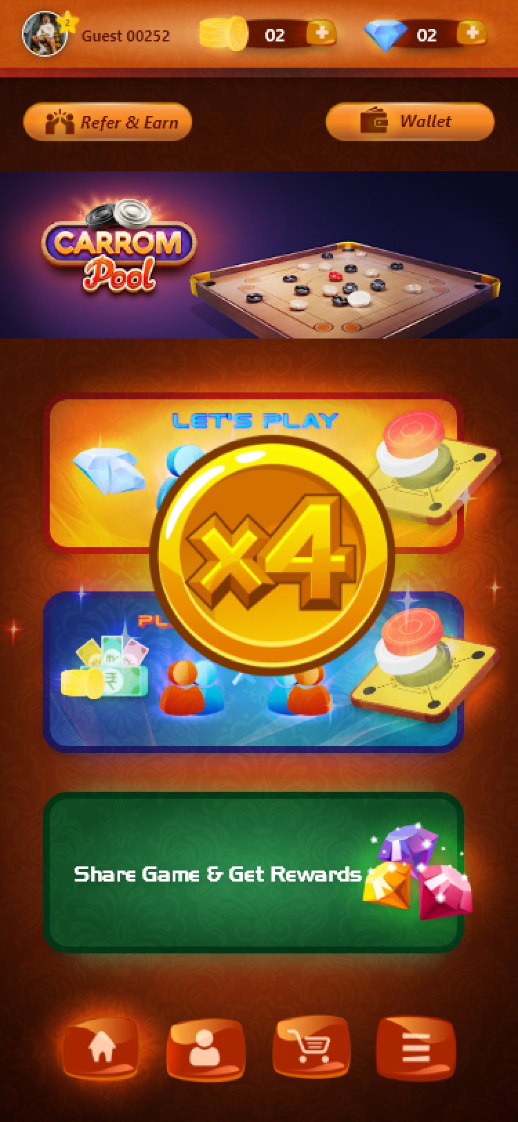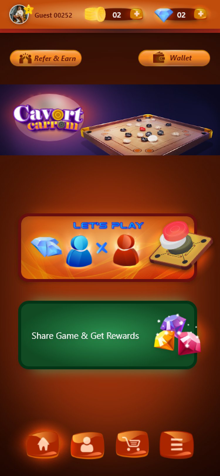 Home Page of Carrom App