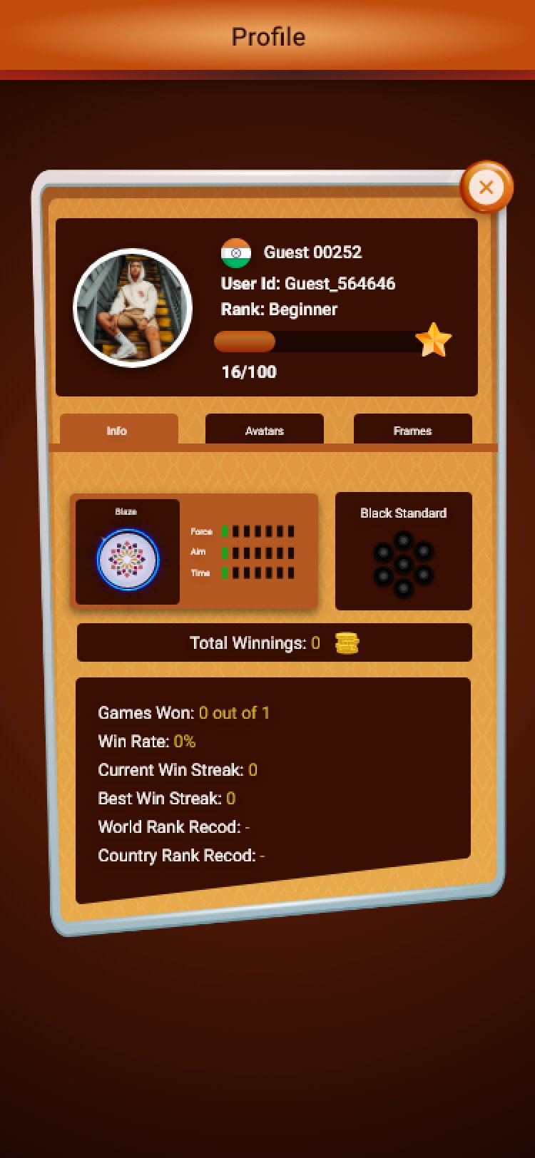 Display Profile of Carrom App